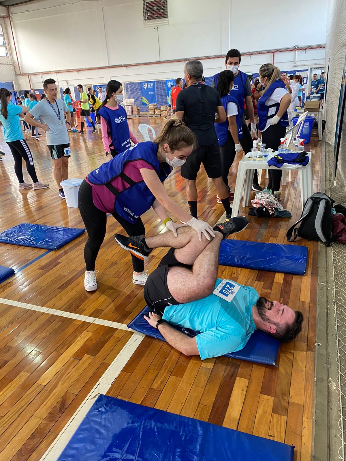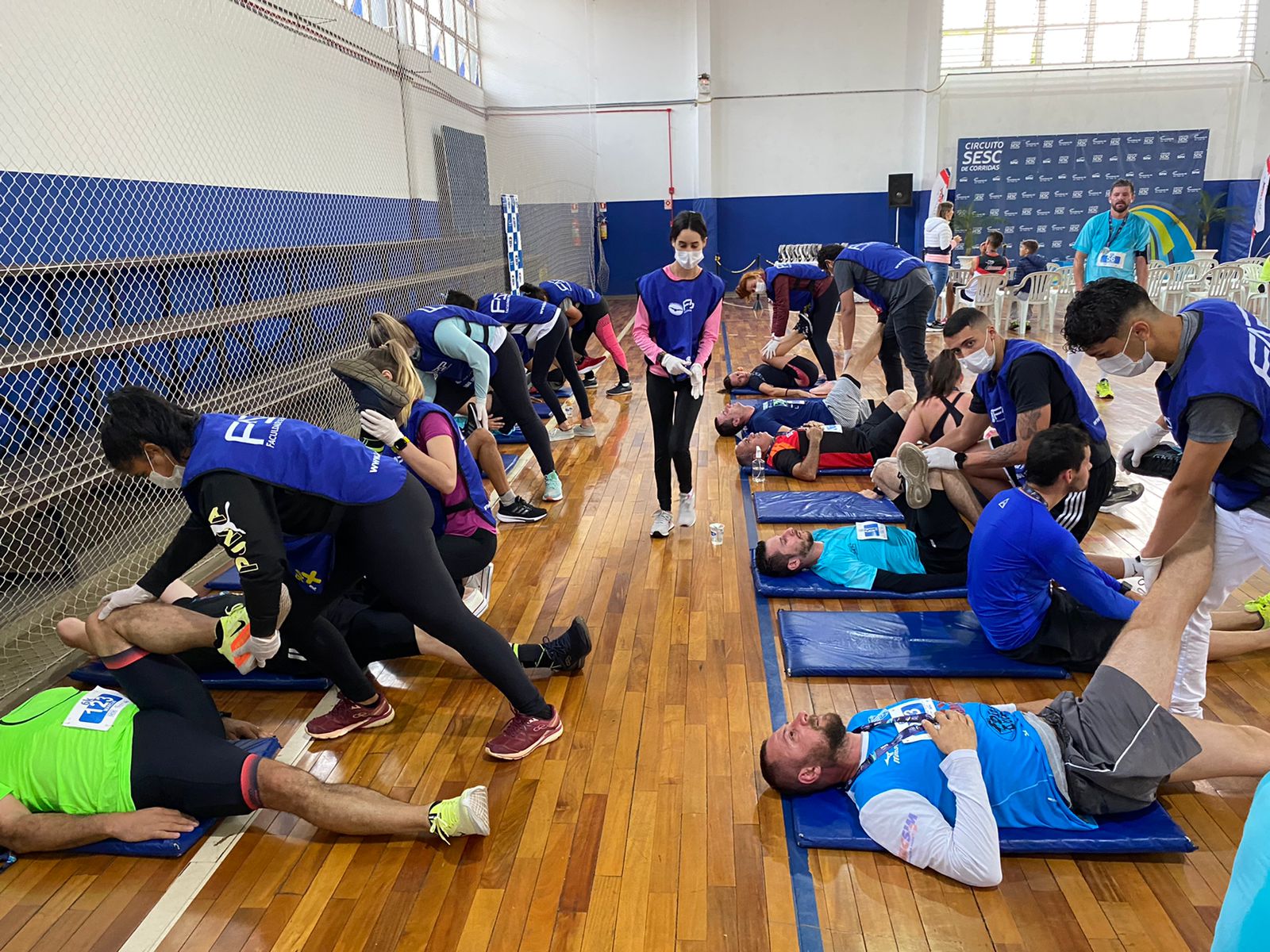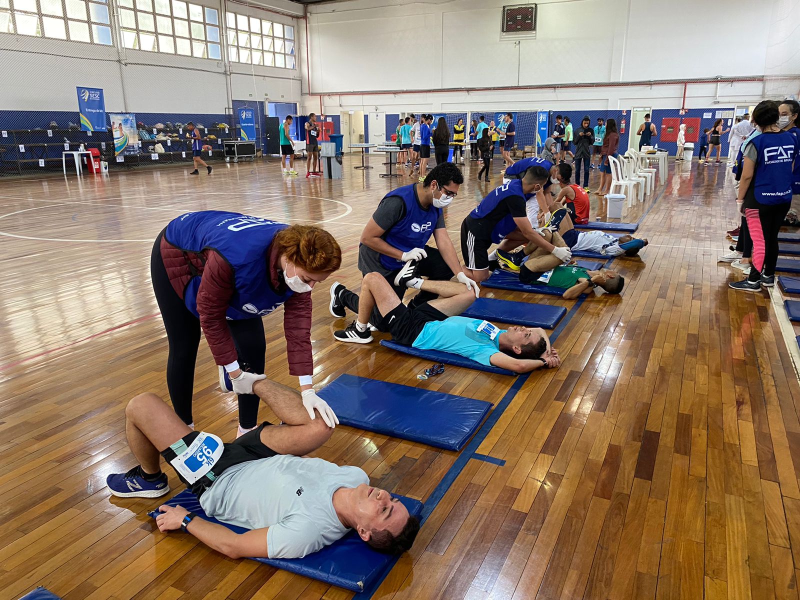 No dia 11/09/22 os acadêmicos do curso de Fisioterapia FAP, participaram do Circuito Sesc Corrida em Apucarana auxiliando os atletas. Além de estar atuando no alongamento pós prova, orientamos as condutas imediatas com relação as lesões ocorridas no momento da prova. A fisioterapia desportiva funciona com programas individuais de tratamento para cada atleta, indicada para todas as idades e contando com equipamentos específicos para treinamento. Buscando o melhor atendimento ao atleta, com atenção total de controle da lesão, o programa é elaborado aliando a correção postural aos exercícios de melhorias no condicionamento físico, visando a potencialização de ganho de força e resistência muscular.