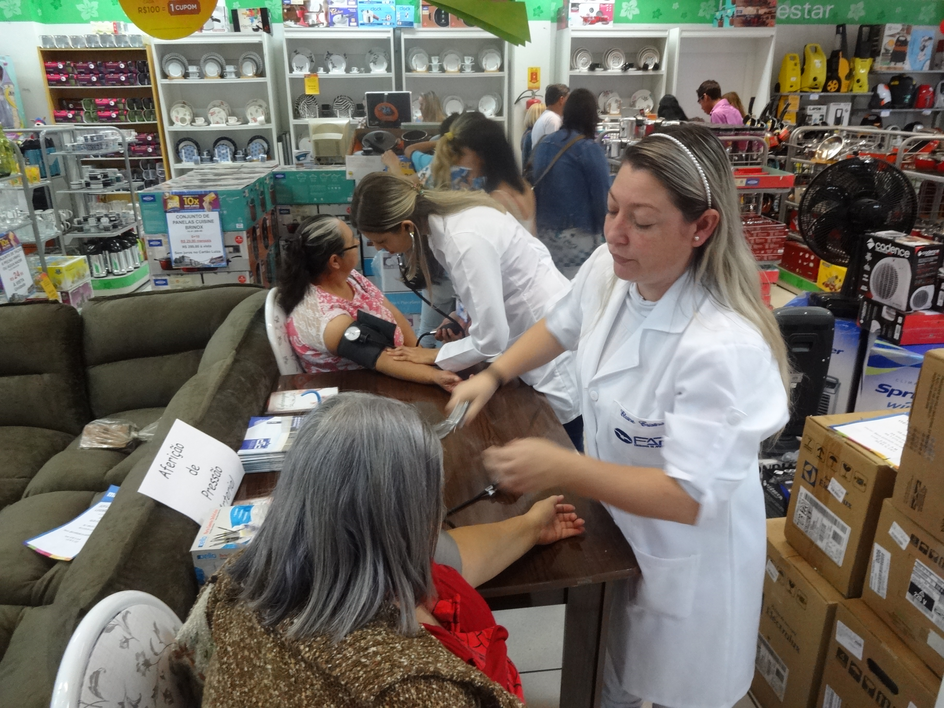 No dia 14 de junho, alunos e professores dos cursos de Enfermagem e Nutrição da FAP, participaram do evento “Cliente de ouro” promovido pela Loja Magazine Luíza de Apucarana. Prestaram atendimentos gratuitos à comunidade, tais como aferição de pressão arterial e orientação nutricional.