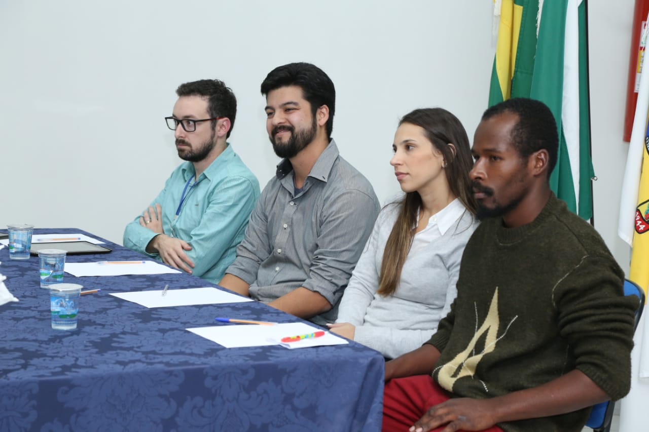 Integrou a mesa o usuário do CAPS AD Cleverson, que relatou sobre sua experiência vida, como foram as situações de internamento, falou a respeito do acompanhamento e atendimento que recebe no CAPS AD; a Psicóloga do CAPS AD Ana Claúdia trouxe uma fala abordando e explicando a respeito do atendimento ofertado pelo serviço.