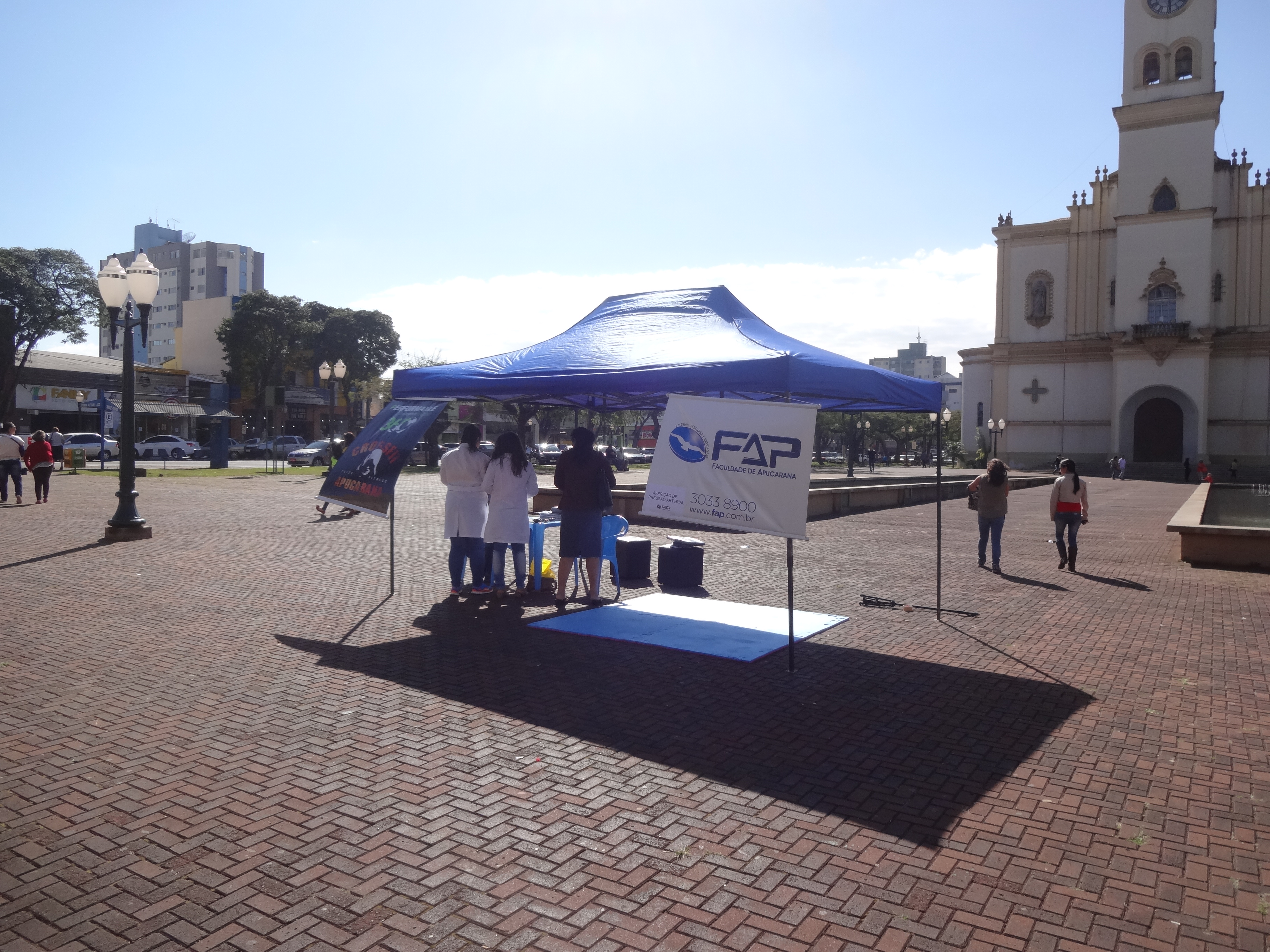 No dia 5 de agosto, alunas do curso de Enfermagem FAP, participaram do evento em comemoração ao Dia Nacional da Saúde. A atividade foi realizada na Praça Rui Barbosa, em parceria com a Academia Performance 360 de Apucarana. Prestaram atendimentos gratuitos à comunidade, tais como aferição de pressão arterial, avaliação corporal e dicas sobre atividades físicas.