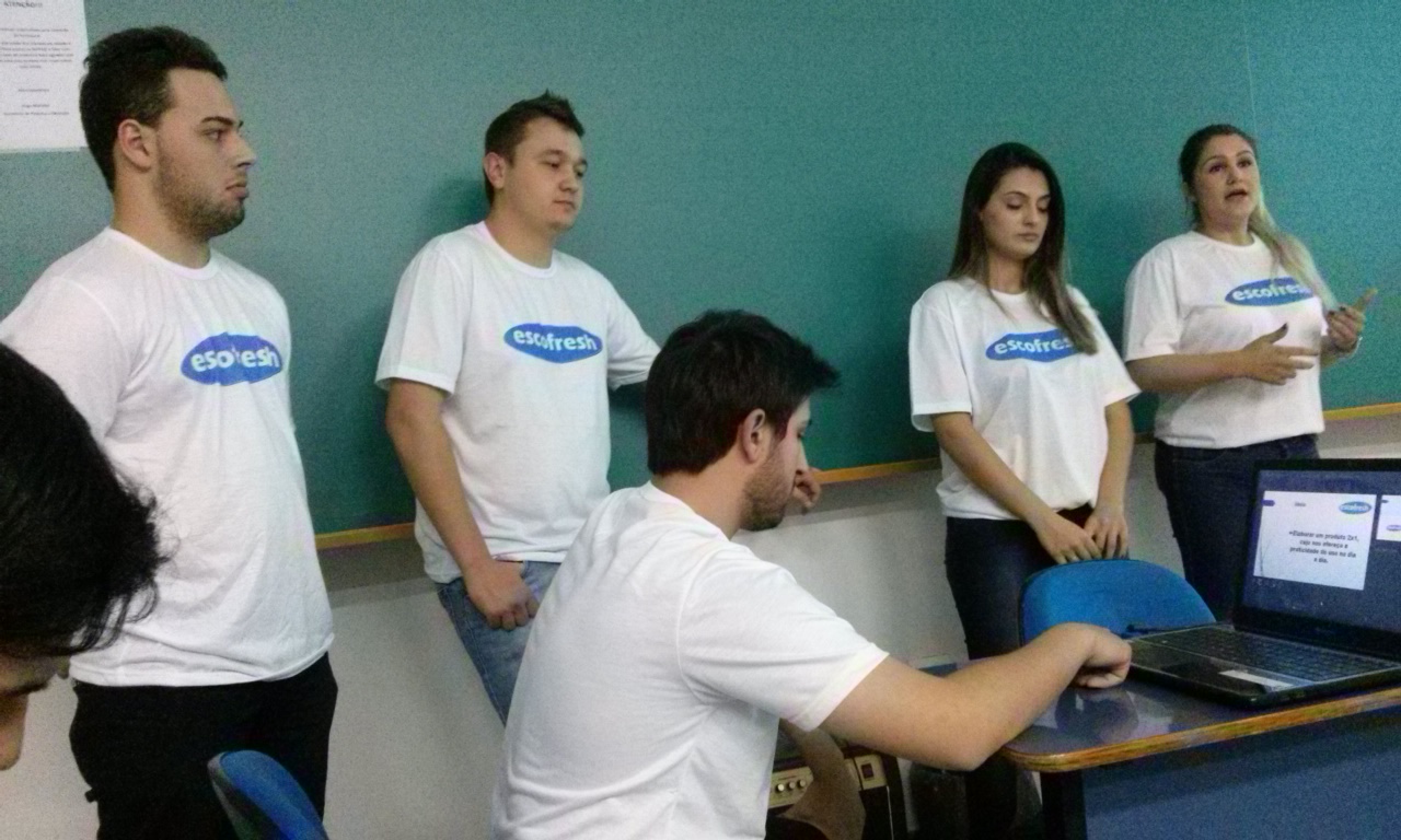O quinto semestre como é de costume, criaram um produto e responderam aos professores da banca de avaliação sobre cadeia de suprimentos, custos, distribuição, produção etc.