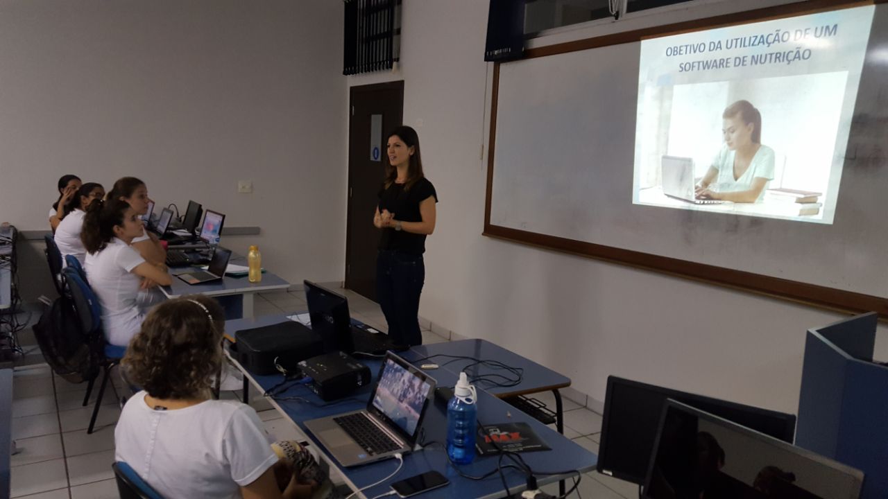No dia 28 de março os alunos do quinto e do sétimo semestre de Nutrição participaram de um treinamento do software Nutrilife®. Esse programa ajuda o profissional Nutricionista à planejar dietas, realizar diagnóstico nutricional e organizar sua vida profissional. A coordenadora do Curso Tatiana Marin e as professoras Ana Helena Andrade e Natália Brandão acompanharam os alunos no treinamento.