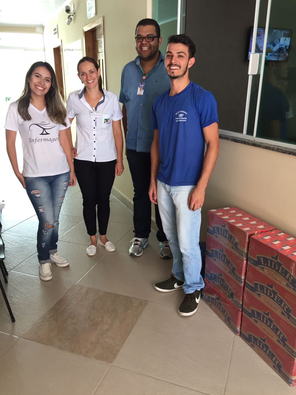 Acadêmicos do 3º semestre do Curso de Enfermagem da Faculdade de Apucarana – FAP, por iniciativa própria, propuseram e organizaram um “trote solidário” para os “calouros” 2017. Partindo da premissa de que a Enfermagem cuida de seres humanos, e com o intuito de sensibilizar e conscientizar os “calouros” sobre a importância desenvolverem ações sociais, os acadêmicos arrecadaram dinheiro e compraram, a preço de custo, após parceria firmada com o Mercadinho Pereira Souza, 100 caixas de leite integral, para doar ao Lar São Vicente de Paulo, de Apucarana. A entrega foi realizada no dia 22 de março de 2017, na presença da acadêmica Isabela Carolina Weber Leal, idealizadora do trote, do gerente do Mercadinho, Douglas Rafael Pereira de Souza Belonci, e do coordenador do Curso, Prof. Dr. Vladimir Araujo da Silva.